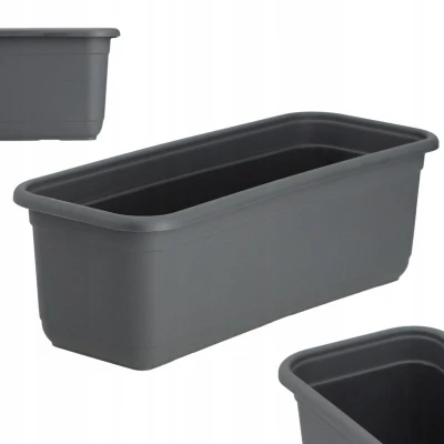 Robust: The Evron planter can be used all year round. Its surface retains its properties even in rain and snow. It is also resistant to UV radiation. Lightweight: A major advantage of the Evron balcony planter is its light weight. Made from high-quality plastic, it can be easily moved to a preferred location. Classic: The planter is available in two colors: terracotta and black-gray. Both colors are timelessly modern, making them a perfect fit for any patio or balcony. Spacious: The Evron balcony planter can accommodate several seedlings. Depending on your needs and available space, you can choose a 40, 60, or 80 cm model. Ergonomic: A major advantage of our Evron planter is its universal rectangular shape. This allows it to easily adapt to any location. Balcony planters are ideal for showcasing your plants. The Evron flower pot is ideal not only for balconies, but also for patios and windowsills. Thanks to its classic rectangular shape, it even fits into awkward corners. The planter