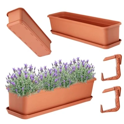 AmazonRobust – the flower box with stand and balcony pot holder can be used all year round. Its surface does not lose its properties even with prolonged contact with precipitation and intense sun. Universal: the set includes the flower pot with drip tray and handles. With these products, you can grow plants successfully without the risk of them getting too much water Classic: the offer includes two colour variants: terracotta and grey-black. Both colours are always in fashion, so they fit perfectly on any terrace or balcony. Voluminous - The Evron flower box has enough space for a few plants. Depending on your needs and free space, you can choose the width model 40, 60 or 80 cm. Ergonomic: The advantage of the balcony planter with base and stand is its practical rectangular shape. It fits perfectly in any place you want to decorate.