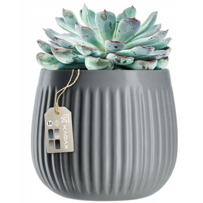 Elegant: The planter is available in four striking neutral colors: gray, dark blue, white, and black. Each looks excellent on its own or combined with the others. Spacious: The Vario planter comes in two sizes, with diameters of 14 and 12 cm. This provides ample space for most plants. Modern: The minimalist design of the ceramic planter is complemented by a delicate wavy pattern, adding a touch of charm. Our planter blends seamlessly with both modern and classic interiors. Easy cleaning: A major advantage of this planter is its simple shape, free of embellishments that could complicate cleaning. The decorative embossing is deep enough for easy cleaning. Excellent quality: The Vario planter makes an excellent gift. It is made of high-quality ceramic that beautifully showcases any plant. This highly aesthetic ceramic planter from KADAX is perfect for your favorite flowers, herbs, or seedlings. This meticulously crafted flower pot is available in two different sizes – 14 or 12 cm. This