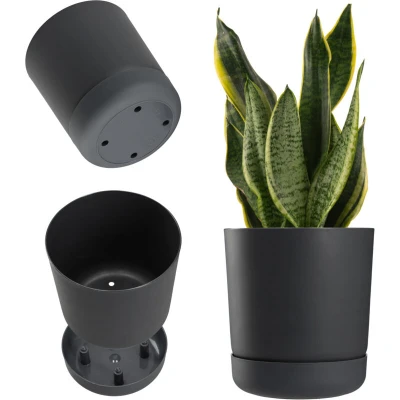 KADAX Flower Pot with Saucer, Plastic Plant Pot, Minimalist Planter, Decorative for Flowers, Cacti and Herbs (25 cm, Anthracite)