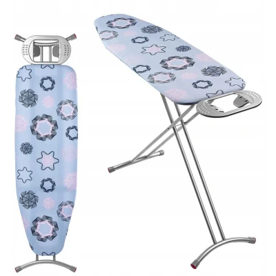 Comfortable ironing: Our folding ironing board is equipped with extra features that contribute to greater comfort and speed while ironing. You'll soon forget your back pain. Robust: The ironing board is precisely crafted from high-quality materials. It features a stable and robust construction, ensuring a long lifespan. Adjustable height: Thanks to its adjustable height, the folding ironing board can be adapted to your height. This is a great relief, as you don't have to bend over and avoid back and neck pain. Optimal size: The steam ironing board has a 120x38cm ironing surface, which is ideal for most customers. It is perfect for ironing trousers, shirts, and dresses. Two color options to choose from: We offer an ironing board with a storage compartment in two color patterns: gray or blue stars. Choose the one that best suits your decor. Forget back pain while ironing! Discover our comfortable ironing board that ensures greater comfort while ironing. It boasts numerous features that