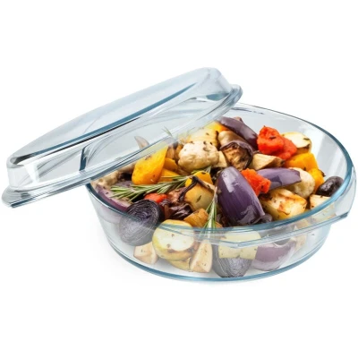 KADAX Glass Casserole Dish, Ovenproof Dish with Lid and Handles for Lasagne, Heat Resistant Cooking, Baking, Roasting (Round, 2.8L)