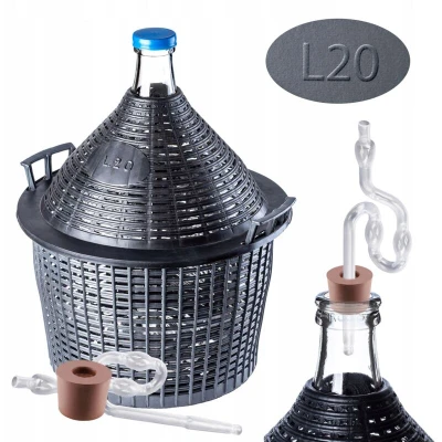 Glass is considered the best material for winemaking. It does not react with alcohol or acids, therefore it does not affect the taste of the beverage. Unlike plastic containers, which are unsuitable for extended fermentation or the aging of alcohol, our fermentation demijohns guarantee a full-bodied experience. The rubber stopper includes a fermentation tube (made of glass or plastic). The soda-lime glass from which the demijohns are made has all the necessary certifications for food contact. It not only ensures a safe fermentation process but also enriches the finished beverage with all the essential nutrients and flavors. Thanks to the narrow neck, the product can be tightly sealed. The following volumes are available: 5, 10, 15, 20, 25, 34, and 54 liters. The set includes the rubber stopper and the fermentation tube. It is recommended to use a special stopper and a plastic fermentation tube for the fermentation process. The cork can be used in two ways: during fermentation (simply