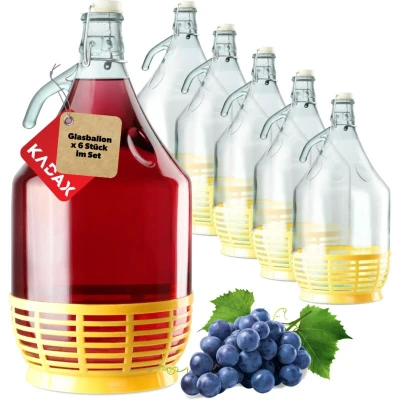 KADAX Glass Demijohn 5L, Transparent Carboy with Plastic Basket for Wine Making, Airtight Container Swing Top Fermentation, Brewing (Set of 6)