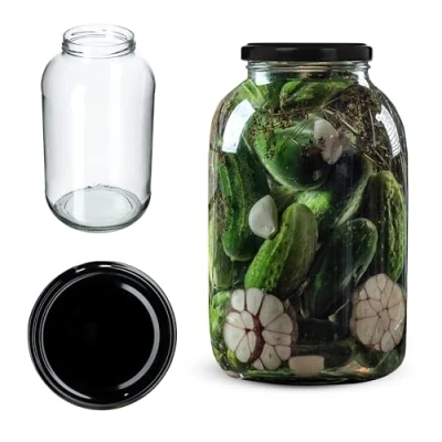 AmazonDurable: The use of high-quality glass ensures that the jars can withstand high temperatures without cracking. This durability is essential for scalding, pasteurising and pickling processes, contributing to a long lifespan for the jars. Reusable: The non-absorbent nature of the jars allows them to be reused multiple times without retaining any residual odours or flavours from previous contents. Capacious: The generous 4-liter capacity of these jars provides ample space for storing a variety of preserves. This makes them particularly useful for pickling cucumbers and cabbage, marinating peppers and tomatoes, as well as storing tinctures, juices, and jams. Transparent: The clear glass construction not only provides a visually appealing display of your culinary creations but also allows for easy identification of the jar's contents. Practical: The large jars are designed to be dishwasher safe, simplifying the cleaning process and making them convenient for reuse.