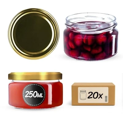 Heat resistance: The use of high-quality glass ensures that the small jars can withstand high temperatures without cracking. This durability makes them suitable for various processes such as scalding, pasteurising, and pickling. Secure seal: These jars come with airtight lids that create a secure seal, ensuring the freshness and longevity of the contents stored within. Easy to clean: Their smooth glass surface makes them easy to clean, whether by hand or in the dishwasher. This feature simplifies maintenance and ensures that they can be reused multiple times without retaining residues or odours from previous contents. Transparent: The clear glass construction provides excellent visibility of the contents, allowing you to quickly identify what's stored inside without the need to open the jar. Versatile: These 250ml jars are appropriate for various food storage requirements, from preserving homemade jams, marmalades, and jellies to maintaining the freshness of dried herbs and spices.