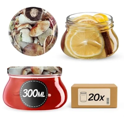 KADAX Glass Jars 300 ml, Small Preserving with Metal Lids for Homemade Jam and Honey, Storing Spices Herbs (Mushrooms, Set of 20)
