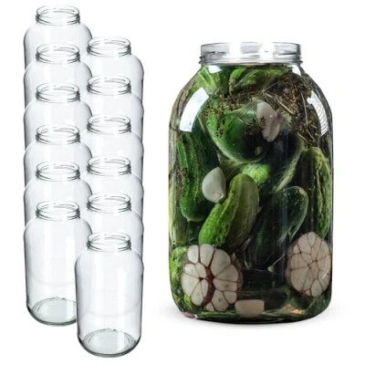 AmazonDurable: The use of high-quality glass ensures that the jars can withstand high temperatures without cracking. This durability is essential for scalding, pasteurising and pickling processes, contributing to a long lifespan for the jars. Reusable: The non-absorbent nature of the jars allows them to be reused multiple times without retaining any residual odours or flavours from previous contents. Capacious: The generous 4-liter capacity of these jars provides ample space for storing a variety of preserves. This makes them particularly useful for pickling cucumbers and cabbage, marinating peppers and tomatoes, as well as storing tinctures, juices, and jams. Transparent: The clear glass construction not only provides a visually appealing display of your culinary creations but also allows for easy identification of the jar's contents. Practical: The large jars are designed to be dishwasher safe, simplifying the cleaning process and making them convenient for reuse.