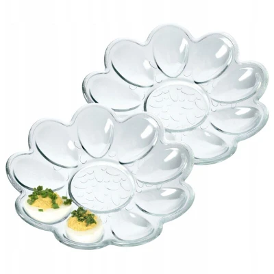 KADAX Glass Serving Platter for Deviled Eggs, Transparent Eggs Holder Easter Breakfast, Elegant Tray Boiled Decorative Plate (Set of 2)