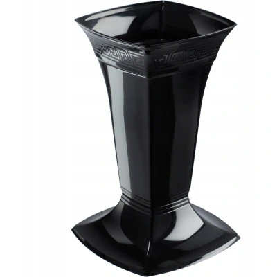 KADAX Grave Vase with Base, Plastic, Black/Low, 39cm x 20cm, Square, Greek Style, Weatherproof, Stable for Flowers on Graves