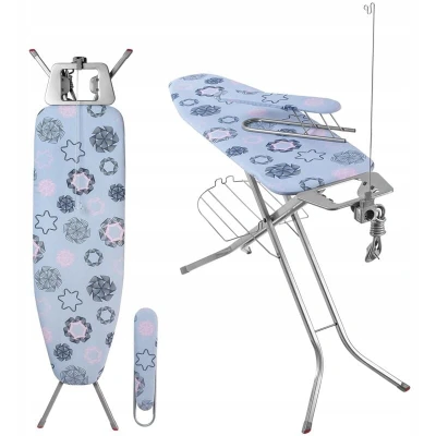 AmazonGreat construction: the KADAX brand ironing board has been equipped with some conveniences. There is a built-in extension cable, cable holder and pull-out shelf for clothes. Particularly easy to hand: a great advantage of the Gorino ironing board is that you can adjust its height. As the dimensions of the assembled ultra-light ironing board are 120 x 28 cm. Interesting design: the ironing board with iron rest is characterised by a classic shape and an elegant finish. The cover is available in three elegant colours: mint, light blue and dark blue). Safe to use: an important part of the height-adjustable Gorino steam ironing board is an iron rest on the side. You can place a hot iron on it.