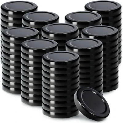 KADAX Jar Lids Ø 53 mm, Sealing Solutions for Small Bottles and Mini Jars, Metal Tops with Three Threads Preserving Jam Honey (Black Lids, Set of 100)