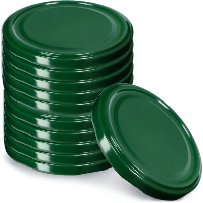 IDEAL SIZE - Screw-on lids with an 89 mm diameter are essential for preserving. The twist-off lids fit 1700 ml jars and bottles with an 89 mm thread diameter and six locking teeth. FOOD SAFE - Our 89 mm canning jar lids are made of galvanized sheet metal and coated on the inside with food-safe silicone. This prevents the contents of the preserves from reacting with the metal and the lid closure won't rust. TIGHT - The canning jar lids with six locking teeth seal jars tightly, both when cold and after pasteurization and sterilization. The universal lids effectively protect the preserves from oxygen, moisture, and insects. TWIST-OFF CLOSURE - The closures are precisely shaped, ensuring that liquid and powdered products retain their full aroma. The metal screw-on lids have a twist-off closure, making them easy to open and close. VERSATILE - we offer jam jars (89 mm) in several sets: 10, 50, 100, and 200 pieces. Our selection includes green and white lids. The lids for canning and jam