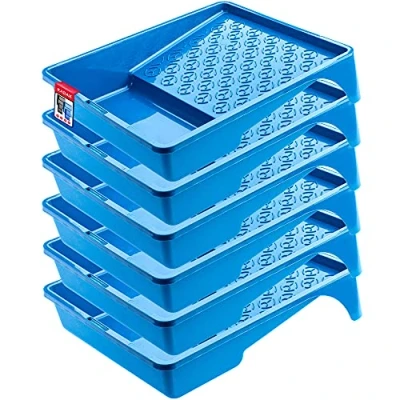 KADAX Paint Tray 25.5 x 33 cm, Plastic Roller for Painting Walls and Decorating, Accessories Room Renovation (Blue, Set of 6)