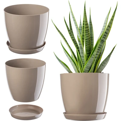 KADAX Plant Pot, Plastic Flowerpot with matching Tray, Indoor Planter in several colours, Lightweight and Waterproof Pot for Office Living Room (⌀12cm, Beige)
