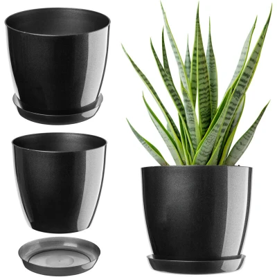 KADAX Plant Pot, Plastic Flowerpot with matching Tray, Indoor Planter in several colours, Lightweight and Waterproof Pot for Office Living Room (⌀14cm, Anthracite)