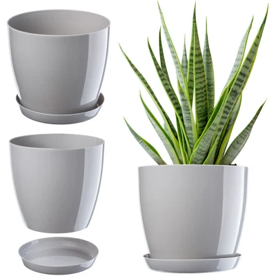 KADAX Plant Pot, Plastic Flowerpot with matching Tray, Indoor Planter in several colours, Lightweight and Waterproof Pot for Office Living Room (⌀16cm, Grey)