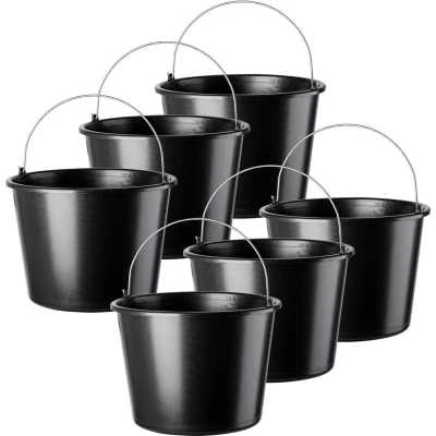 KADAX Plastic Bucket 16L, Large Builders with Metal Handle for Cleaning and Plastering, Black Construction Cement, Paint (Set of 6)