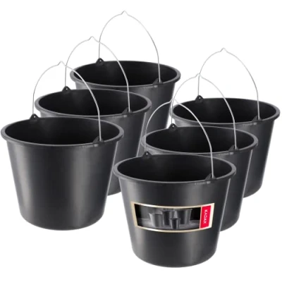 Multifunctional: Whether you're renovating your home or tending to your garden, our buckets are adaptable to a wide range of needs. From transporting heavy building materials to serving as a reliable tool storage solution – the possibilities are endless. Handle: We've equipped our buckets with galvanised wire handles that not only increase their durability but also provide a comfortable grip. Whether you're using them for gardening, construction or any other heavy-duty work, you can rely on these handles to hold up. Polypropylene: The buckets are made from polypropylene, a material known for its excellent chemical resistance, physiological inertness, thermal expansion, hardness and tensile strength. Durable: The reinforced ribbed base increases the buckets' resistance to mechanical damage, making them suitable for tough working conditions. Spacious: Whether you need to transport water, stones, construction tools, sand, cement, or any other substance, these buckets are up to the task.