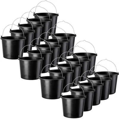 KADAX Plastic Bucket 5L, Large Builders with Metal Handle for Cleaning and Plastering, Black Construction Cement, Paint (Set of 20)