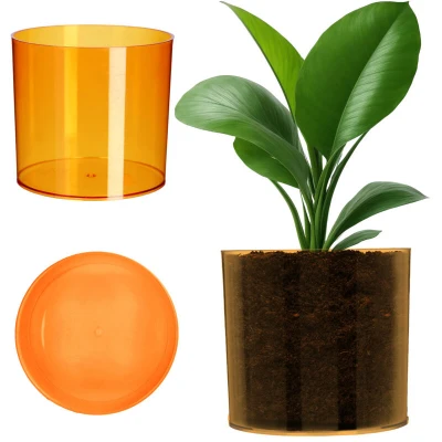 KADAX Plastic Flower Pot, 13 Colours, Shiny Cylindrical Herb Vase, Planter, Plant Pot (Diameter 12.8 cm, Orange)