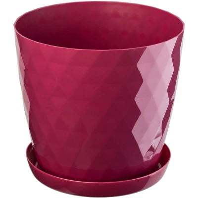 A pot with a saucer, ideal for flowers, plants, herbs, or small vegetables. Available in four colors and five sizes. UV-resistant – it won't change color under light. This pot will be an ideal addition to your interior design. You can plant any combination of plants in it, choosing those with similar light and humidity requirements, or create a display of identical flowers in a variety of colors or a single color. The modern design will look great in any house, apartment, office, or vacation home. The pot is perfect for creating unique floral arrangements. You can combine your plants as you like, using one, a few, or even a dozen pots. The glossy finish and interesting pattern give it a unique look. This pot allows you to plant several different plants. It is ideal for houseplants such as orchids, cyclamen or African violets, Sansevieria trifasciata, Chlorophytum, Ceropegia, Guzmania, Begonia, bromeliads, cacti, Dracaena fragrans, Kalanchoe, potted roses, and various types of ferns.