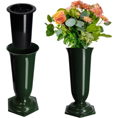 KADAX plastic grave vase, flower vase with insert, 15 cm, green