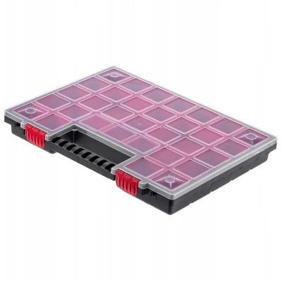 Useful: A toolbox is an essential part of every DIY enthusiast's equipment. It helps you keep your tools organized. It's always worth having it within easy reach. Functional: The toolbox has two removable universal boxes. This allows you to adapt the interior to the quantity and size of your tools. The organizer is excellent for storing screwdrivers, hammers, nails, and other items. Robust: The case and the transparent lid are made of durable plastic. The toolbox is equipped with sturdy latches. Convenient: The toolbox has a comfortable handle, making it easy to carry anywhere. The transparent lid allows for quick checking of the contents and finding the necessary accessories. Various models: the assortment boxes are available in three sizes: 28.7 x 18.6 x 5 cm (6 boxes), 34.4 x 24.9 x 5 cm (18 boxes), and 39.9 x 30.3 x 5 cm (21 boxes). We offer sets of 1, 3, 6, and 12 pieces. Are you tired of constantly searching for screws, dowels, and other small parts? We understand completely,