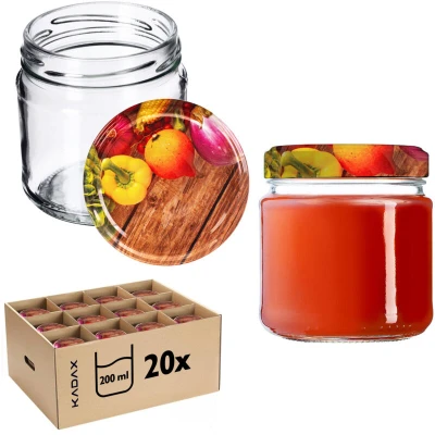 KADAX Preserving Jars, 200 ml, Set of 20, Dessert Jars fi66 Jam with Twist Off Lid, Airtight & Dishwasher Safe, Thick Walled Glass