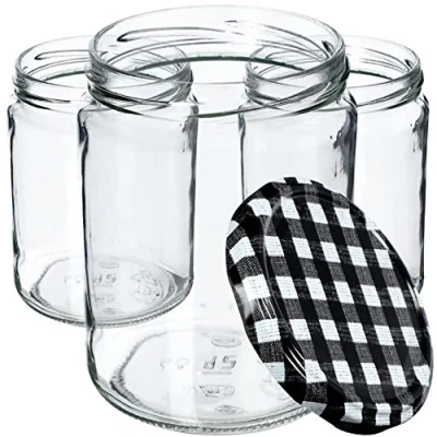KADAX Preserving Jars 540 ml, for Screw Lids, Jam Jar, Storage Round (Black Checked / Pack of 8)