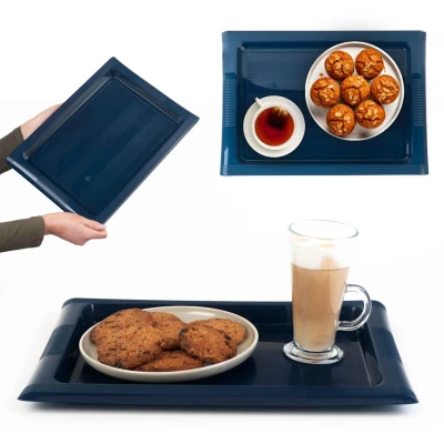 KADAX Rectangle Plastic Tray for Kitchen, Non Slip Kitchen Tray, Serving Coffee with Handles, Breakfast (Navy Blue)