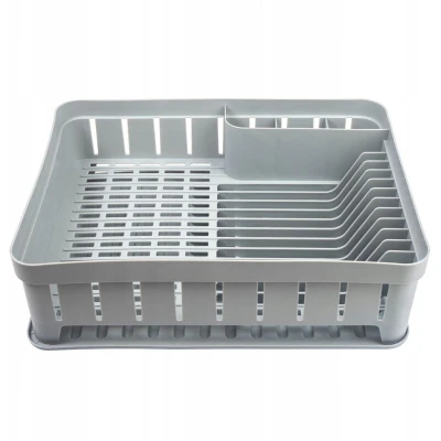 KADAX Rectangular Kitchenware Rack with Cutlery Holder, Dish Dryer Drip Tray, Drainer for Kitchen, (Light Grey)