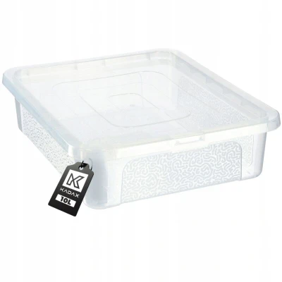 Exceptionally adaptable – the Dozza plastic container has a rectangular shape, making it easy to organize the inside of cabinets or drawers. Thanks to the lid, you can also stack accessories. High-quality workmanship – when using KADAX containers, you don't have to worry about items placed inside. The tight-fitting lids click into place, effectively protecting the contents. Versatile use – a plastic container with a lid becomes an indispensable item in any room of your home. You can store children's toys, office supplies, clothes, or dry goods in it. Aesthetics – all available Dozza organizers come in two color options – transparent or black. They fit into any decor without overwhelming it or creating visual contrasts. Extremely spacious – you can place the container in a closet, on a desk, or in the bathroom to maximize the interior space of any cabinet or shelf. The manufacturer offers up to 7 different capacities: 30, 20, 17, 11, 10, 5, and 4.5 liters. There is hardly a more tried