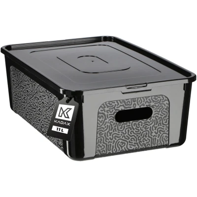 KADAX Rectangular Storage Box with Lid, Container, Stacking Plastic Box, Space Saving (11L, Black)