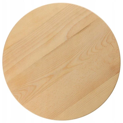 Functional: This wooden serving platter, available in diameters from 25 to 60 cm, will prove its worth in any household. Thanks to its large surface area, you can easily serve snacks, cheese, and pizza. Robust: The turntable is made of natural wood, which is resistant to warping and deep scratches. This handcrafted, detailed rotating tray is built to last. Antibacterial: The wooden board has antibacterial properties, preventing germs from contaminating food. It is also exceptionally hygienic and easy to clean. Knife-friendly: The round surface won't dull knives, and small scratches will close on their own. This eliminates the need to sharpen knives before each use. Various sizes: Its aesthetically pleasing design makes it a great gift. We offer 1.6 cm thick models in eight sizes: 25, 30, 35, 40, 45, 50, 55, and 60 cm in diameter. Are you looking for a robust and sturdy serving platter? Do you want to serve your snacks in an interesting and elegant way when meeting friends and family?