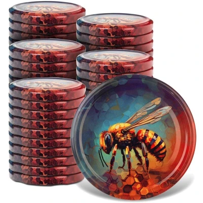 KADAX Screw Caps Fi82mmx50 Pcs Twist Off Lid Set Metal Spare for Canning Jars with 6 Snap Teeth Fall & Preserving (Honey Bee, 50 Pieces)