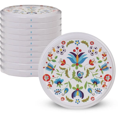 KADAX Screw Lid Diameter 82 mm Metal Twist Off Replacement for Canning Jars and Preserving with 6 Notches (Flowers, Pack of 10)