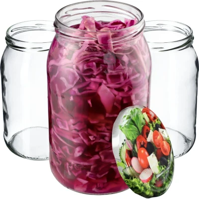 UNIVERSAL – These 900 ml jars are perfect for homemade preserves of fruits and vegetables, as well as for storing various dishes. They are suitable for repeated pasteurization and stocking. CAPACITY – Classic jars with a capacity of almost one liter allow you to prepare larger batches of preserves for your family and loved ones. Each jar holds 900 ml. DAMAGE-RESISTANT – Made of thick glass, these large jars are break- and crack-resistant, as well as heat-resistant. This makes them ideal for making homemade jams and preserves, which can then be pasteurized. EASY TO CLEAN – The 900 ml jars have 82 mm diameter holes, making them easy to use for canning. Jars with larger holes are also easier to clean. They can be cleaned by hand or in the dishwasher. FUNCTIONAL – the jars have special lids. They can be used for pickled and preserved cucumbers, mushrooms, jams, preserves, compotes, tinctures, honey, as well as pâtés, sausages, and dried products. They can also be used as transparent