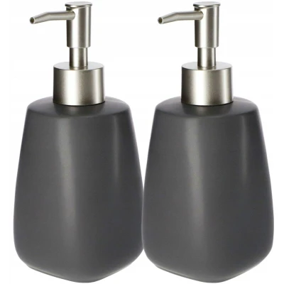 KADAX Soap Dispenser 400 ml, Ceramic Hand Container with Plastic Pump for Bathroom, Refillable Matte Bottle Lotion (Grey, Set of 2)