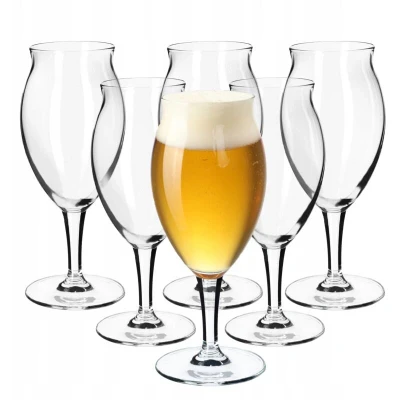 UNIVERSAL - These beer glasses and tulip glasses are suitable for many types of beer, including light, dark, wheat, fruit, and craft beers, as well as cocktails, juices, and water. SCRATCH-RESISTANT - The tulip glasses are made of high-quality glass that is resistant to scratches and damage. Their delicate stems and solid bases provide stability and prevent breakage. ELEGANCE - The simple shape of the tall beer glass is both aesthetically pleasing and practical. The clear glass beautifully highlights the beer's color, and the slanted bowl helps retain the aroma. EASY TO CLEAN - Our lager glasses are oval-shaped and comfortable to hold. The smooth surface is easy to clean and dry. The wheat beer glasses are dishwasher safe. PRACTICAL - The Kölsch glasses complement any tableware. These draft beer glasses are perfect for everyday use, celebrations, and parties. They are suitable for both bock and specialty beers. LOOKING FOR PRACTICAL AND ELEGANT BEER GLASSES? We offer functional