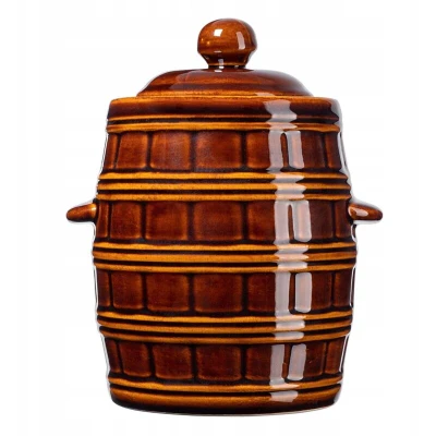 Handcrafted: This stoneware pot with a water channel features an impressive design. The ceramic surface is glazed, giving it a shine and a warm brown color. Extremely airtight: The pickling pot with a lid can be hermetically sealed. The water channel plays a crucial role here. Safe: The highest quality ceramic, which is safe for contact with food, was used to make the pickle pot. The preserves retain all their nutrients. Spacious: You can customize the lard pot model to your own needs. There are six models available, holding 3, 2, 5, 8, 12, 16, and 25 liters. Durable: The ceramic surface and the classic design of the sauerkraut pot contribute to its functionality. The pickling pot with the water rim is suitable for the microwave, oven, and dishwasher. Homemade pickles are a good source of vitamins. The stoneware pot with the water rim makes it even easier. Because the pot is made of high-quality ceramic, the fermentation process is completely natural, sustainable, and simple. You