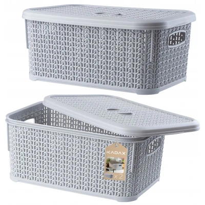 KADAX Storage Basket 6L, Decorative Plastic Container with Lid, Rectangular Organiser Handles for Bathroom, Kitchen, Bedroom (Grey, Set of 2)