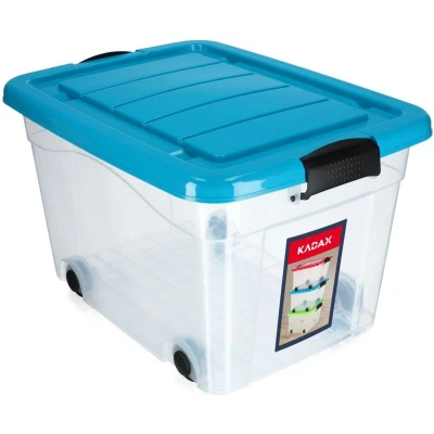 KADAX Storage Box, Large Plastic Container with Lid and Wheels, Clear Organiser for Toys, Useful Box Moving, House Organisation (40L, Blue)