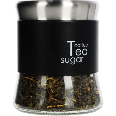 KADAX Storage Jar 750 ml, Large Glass Container with Metal Lid, Transparent Kitchen Canister for Storing Coffee Beans, Tea Leaves, Sugar (Black)