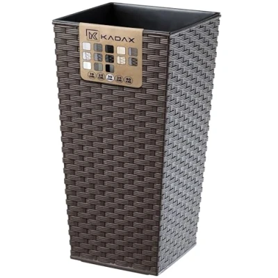 KADAX Tall Planter, Lightweight Plastic Flowerpot for Garden, Balcony, Large Weatherproof Plant Pot Outdoor and Indoor Use (57 cm, Mocha Rattan)