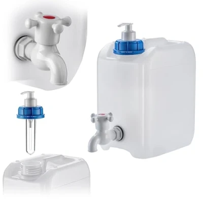AmazonMultifunctional: our canister makes every work with running water easier. The surface of the canister is food safe, so you can use it not only in the toilet, but also in the kitchen. Practical: the Porti water container is easy to use. The built-in tap can be easily adjusted. Both the canister and the soap dispenser can be refilled several times. HIGHLY DURABLE: The Kadax Portable Water Spout Canister has a sturdy construction. The plastic is resistant to scratches, bumps and splinters. With different capacity: the manufacturer offers 4 models of the Porti canister. The smaller models hold 5 and 10 litres of water, the larger 20 and 30 litres. There is something for every need. Mobile: the advantage of the water container is that it is mobile. The entire construction is equipped with a handle so that it can be transported to any place.