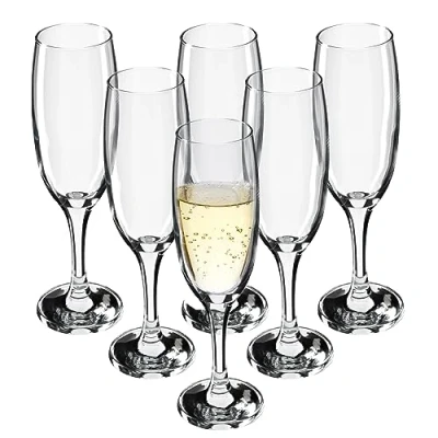KADAX Wine Glasses, Dishwasher Safe Goblets, Elegant Glasses for Red and White Wine, Glass on Long Style, Goblet Serving (6 x 220 ml, Champagne)