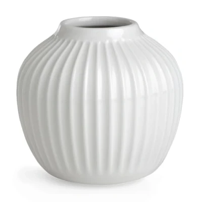 Kähler Hammershoi Porcelain Vase with Grooves, Modern Vase, Round, Bulbous, Scandinavian Design for Flowers, White, 13 cm