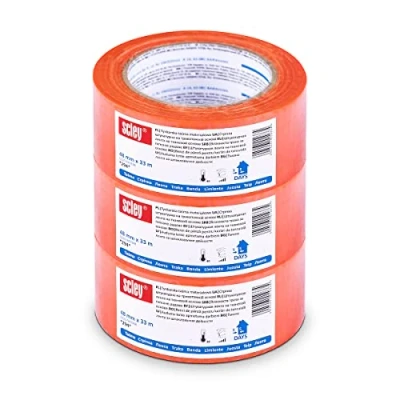 [Adhesive power] The material tape with very high adhesive strength retains its properties when working indoors and outdoors. [Life] The tape retains its properties up to 5 days after sticking. After peeling off, the tape leaves no trace. [Durability] The tape is resistant to adverse weather conditions such as high or low temperature, humidity and UV radiation. Universality: The functional construction of the tape allows use when working on facades as well as surfaces in the building interior. [Various surfaces] The tape adheres perfectly to flat, slightly wavy and rough surfaces.