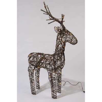 General description Add some class to your Christmas decor this year with this beautiful traditional light-up reindeer. Standing 104cm tall, this deer lights up with 48 warm white LED lights, adding a warm soft glow to your festive lighting. The LED lights make the decoration extremely eco-friendly with their low energy consumption, saving you on energy bills and providing a minimum bulb life of up to 50,000 hours. With the lengthy 8m lead cable provided from plug to reindeer, this festive light is perfect for both indoor and outdoor use. The reindeer would look perfect outside a front door, next to your Christmas tree, or in your garden as part of a lighting display. Technical specifications Height: 104cm Width: 24cm Length: 45cm Number of LED lights: 48 Lead cable length: 8m Minimum bulb life: 50,000 hours Other information Transformer must be placed indoors or in a weatherproof box.